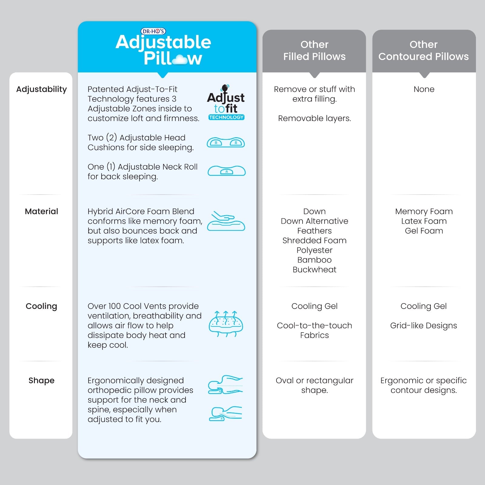 - 我們的混合空氣芯泡棉是記憶泡棉的專有混合物,可讓枕頭毫不費力地貼合您的頭部並提供整體舒適的支撐。