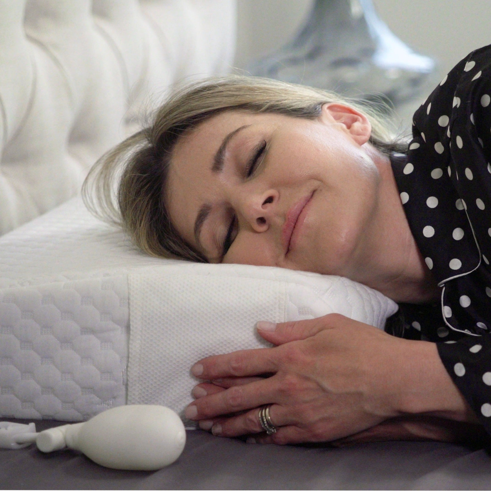 有了 DR-HO'S 可調式枕頭,您無需每晚費心調整靠墊。只需找到舒適的設置,按下氣鎖夾,即可將靠墊保持在您想要的高度。